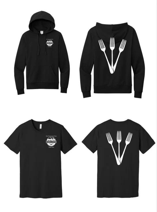 We have Three Forks tees, pullovers, beanies, stickers and ceramic mugs available on location.